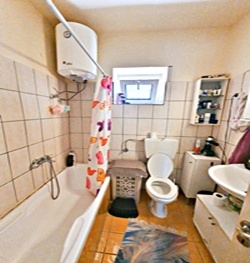 Family bathroom with bath and overhead mixer-shower. Both bathrooms are fully