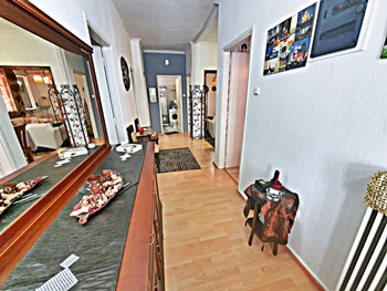 The house has two apartments. The ground floor has two bedrooms, a large lounge and dining area, a kitchen and a shower room. There is a separate entrance to the first floor which consists of one bedroom, a lounge a kitchen dining area and a shower room. There is a balcony on this floor and a terrace on the ground floor. The house has a double garage and large gardens with mature olive trees, walnut, plum, and fig trees and several vines.
