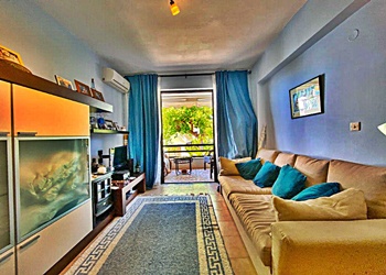 In a quiet neighbourhood just a 10-minute walk from Plaka Beach in Drepano, Argolida, this 65 sq.m. top-floor corner apartment is located on the first floor of a well-designed, small apartment complex with maintained communal areas. The apartment is bright and airy, and the layout includes a spacious open-plan living and dining area, a fully, fitted corner kitchen, one (1) bathroom, and two (2) bedrooms, each with built-in wardrobes. Each bedroom opens onto a spacious covered veranda (22 sq.m. each) through elegant French doors, creating a seamless flow between indoor comfort and outdoor living, while offering lovely views — perfect for relaxing or entertaining. Equipped with aluminium window frames, double-glazed windows with mosquito screens, air conditioning, a fully fitted kitchen with cooker and washing machine, white marble floors throughout, an armoured front door, and an extra water tank with pump, this apartment offers both comfort and functionality. The apartment is delivered equipped and furnished, offering immediate availability for its new occupants. A prime location just 700 metres from Plaka Beach, 1 km from Drepano village with all amenities, and only 11 km from the charming town of Nafplio.
