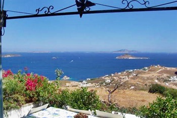 Upstairs two bedrooms exit to a common large terrace with universal view across the eastern side of the island. All these areas have views of the sea and the sunrise.