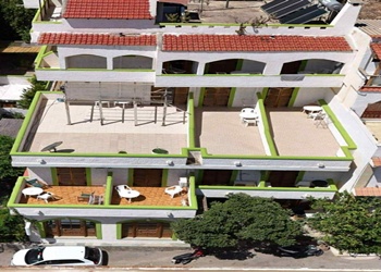 The hotel is a three floor building. The year of construction is 1986 - 1987 only a few metres away from the beach. It consists of an upper ground floor plus a lower ground floor ( Semi Basement ) with two floors above the ground floor. The area is 450 sq mts. It was restored and refurbished three years ago when the last floor was constructed.