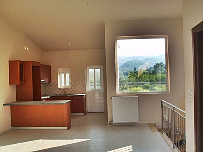The main house has 3 bedrooms, ( 2 En suite ) and below are two apartments, one with 2 bedrooms ( 135 sq mts ) and one with 1 bedroom ( 60 sq mts ) The apartments below bring in 420 Euros per month for the two bedroom apartment and 300 Euros for the one bedroom apartment. The whole property has a large garage plus boiler room and storage room. It can be sold with or without furniture. The property is only 8 klms from Corinth and 100 klms from Athens.