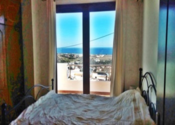 The house has retained all of its unique charm and traditional qualities including the archway on the split level dividing the brand new kitchen and living area. The main focal point of the lounge is a beautiful open log fire with wooden beams on the ceiling and parquet tiles throughout. The kitchen consists of handmade wooden fitted kitchen with all the amenities required in your home away from home. Dining area for 6 , breakfast bar with stools. Upstairs you will find three bedrooms ( two double bedrooms and a large single ) and a bathroom with bath and shower. The two front bedrooms have large balconies overlooking the fantastic, breathtaking views and again chairs to sit and appreciate the panoramic views.