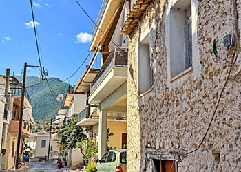 A traditional stone-built house located in the centre of the village of Ancient Epidaurus. It features a charming external stone staircase that leads to the upper floor.